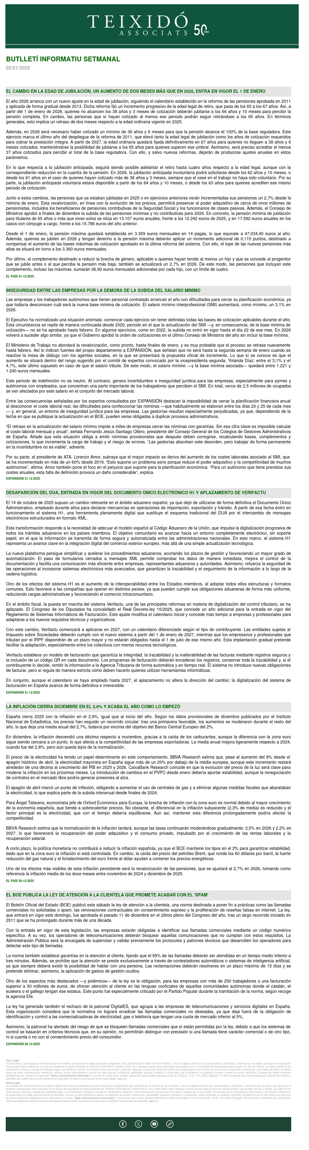 BUTLLETÍ SETMANAL 02/01