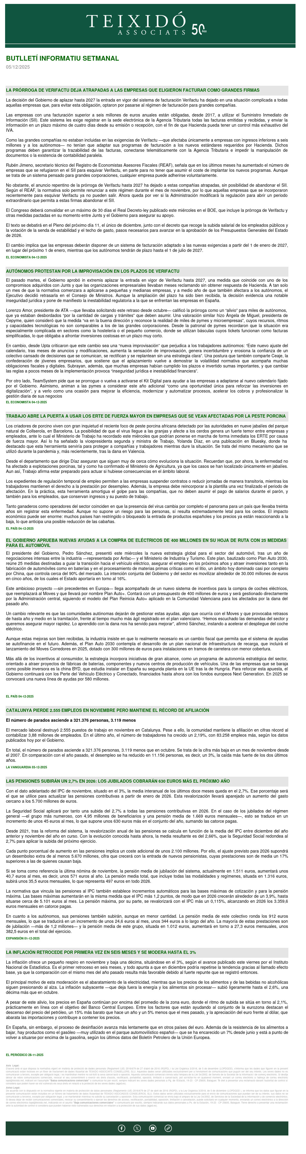 BUTLLETÍ SETMANAL 05/12