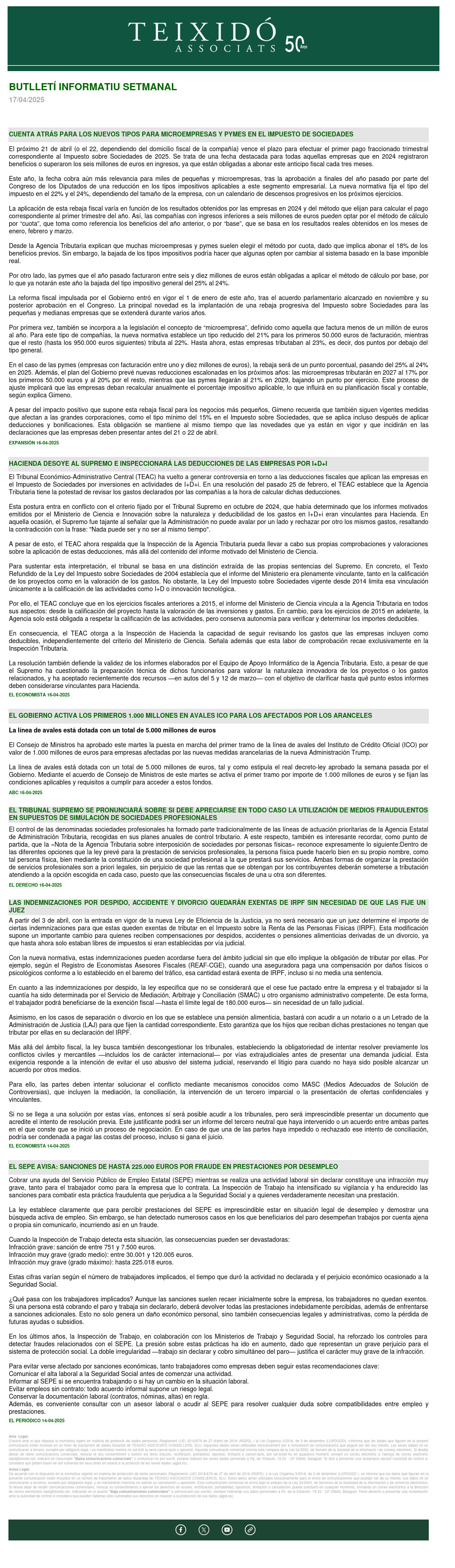 BUTLLETÍ SETMANAL 17/04
