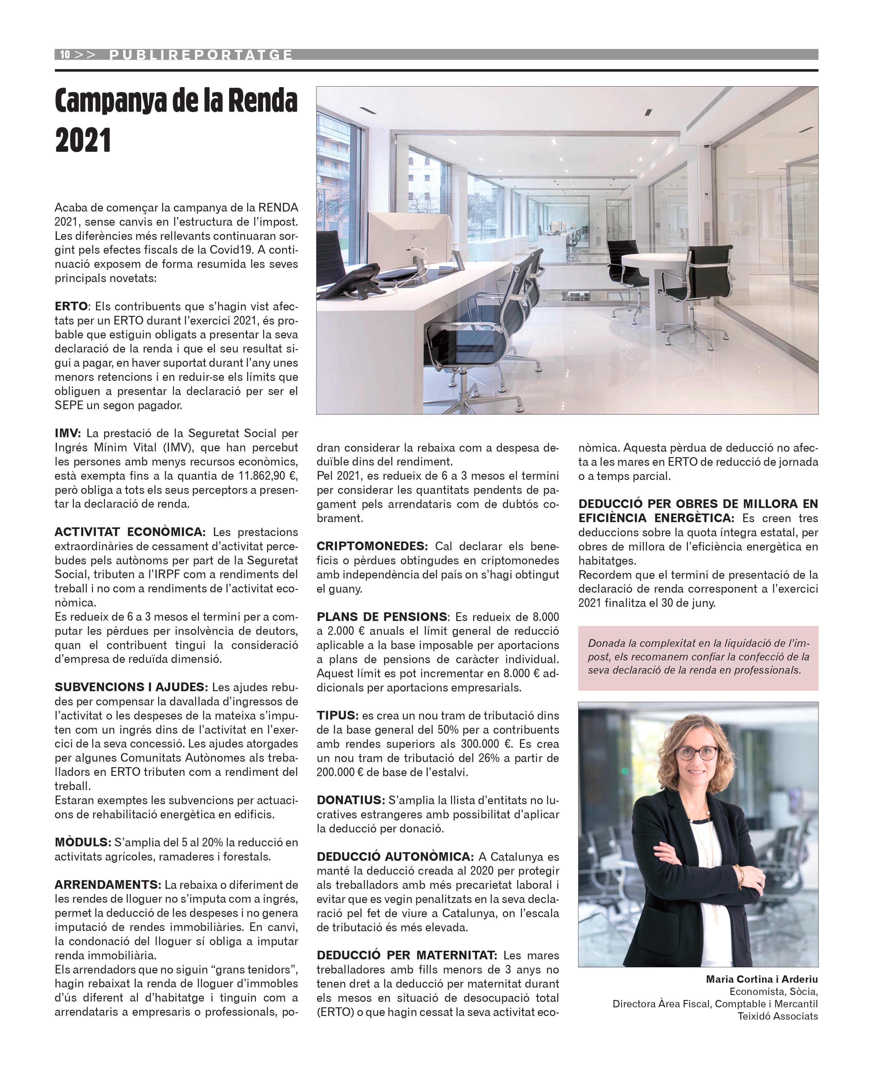 Campanya de la Renda 2021 amb Maria Cortina i Arderiu